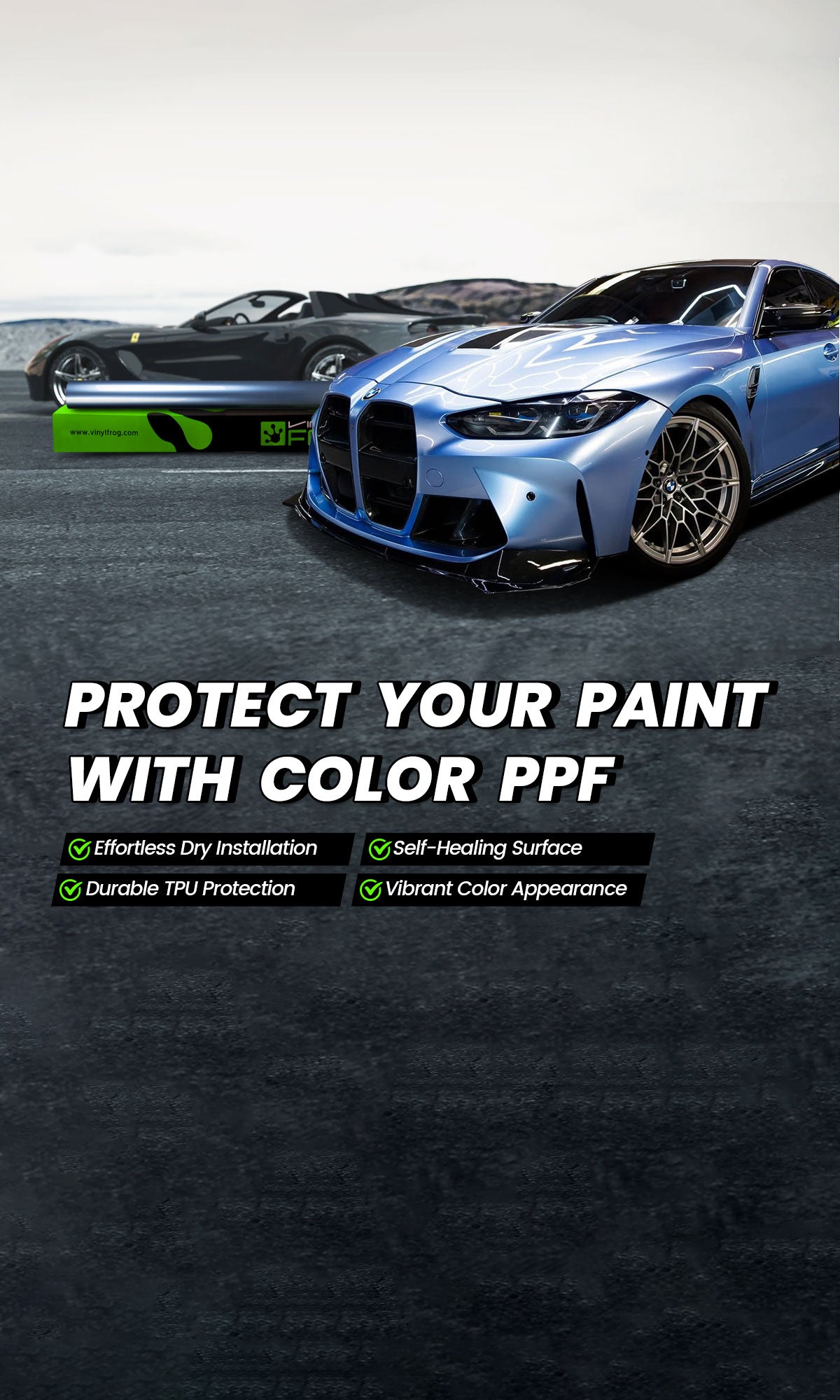 An aftermarket product made of vinyl that is used to fully or partially cover a vehicle’s exterior, available in a wide range of colors, finishes and textures. It either overhauls the look of the car completely or gives it a bespoke livery depending on the choice. One can also bedeck with a large vinyl graphic or decal.